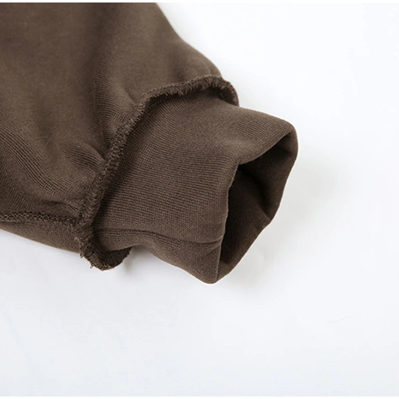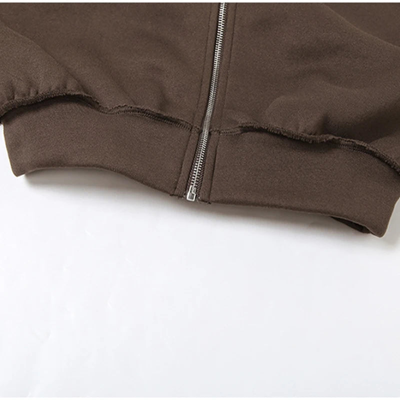 - Design: Raw-seam paneling with cropped zip hoodie and wide-leg pants