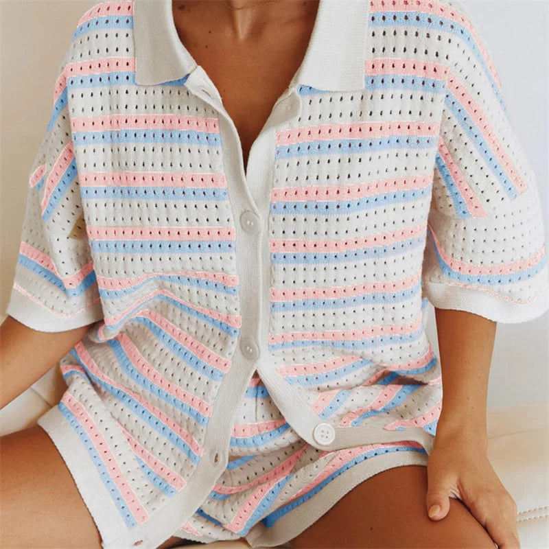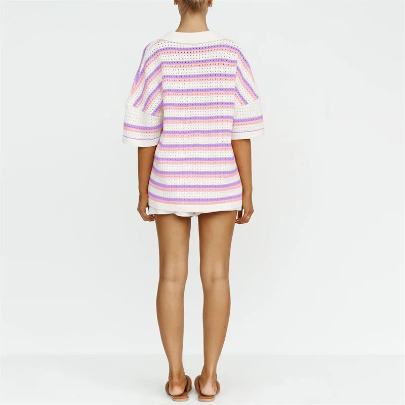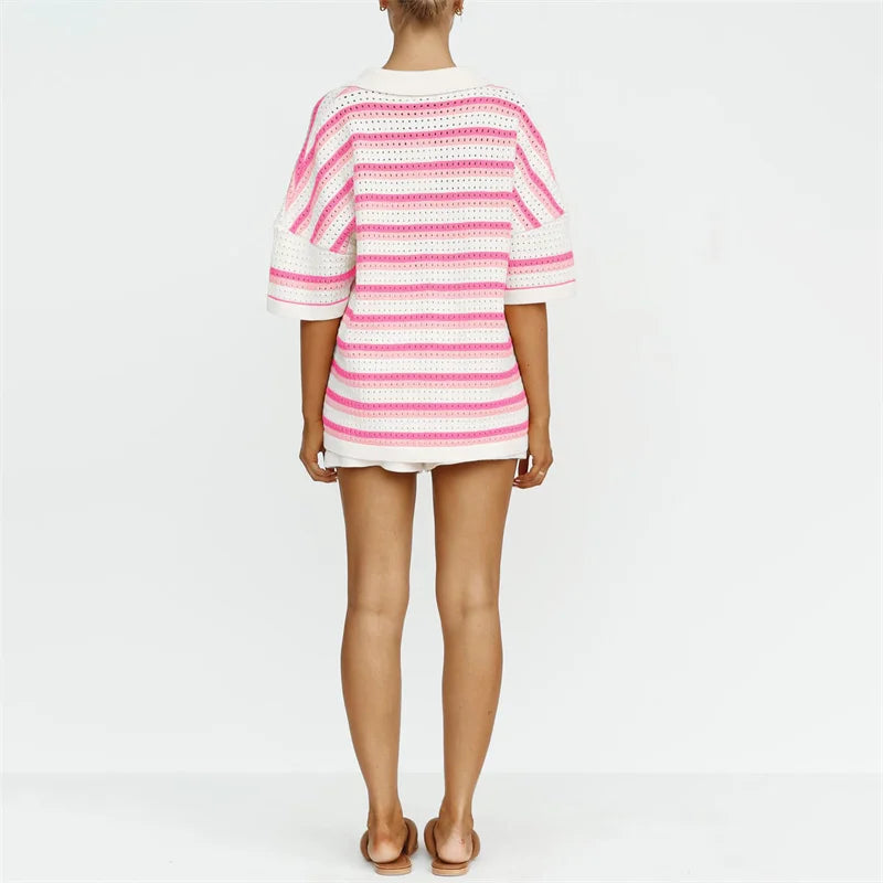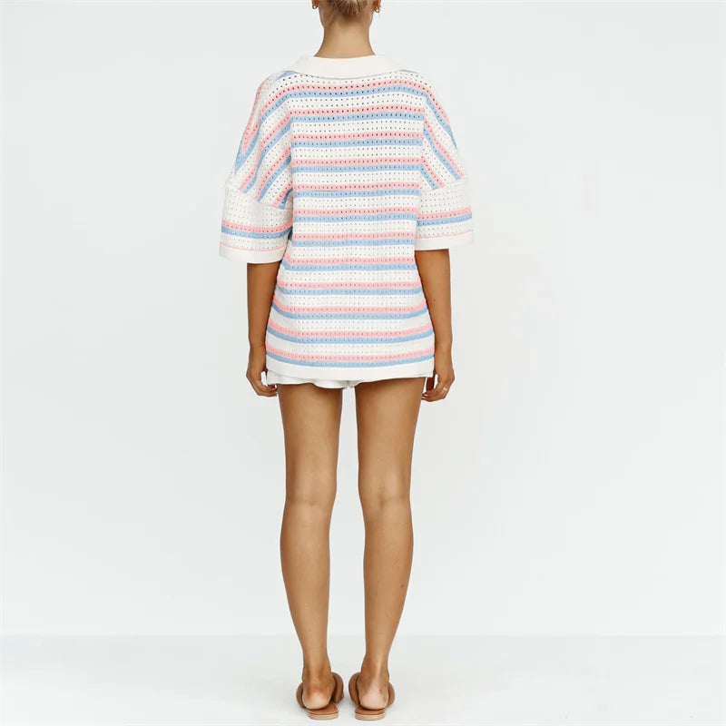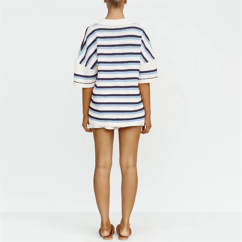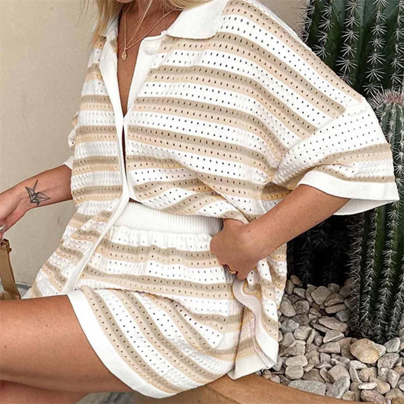 Striped 2-Piece Beach Set – Shirt & Shorts