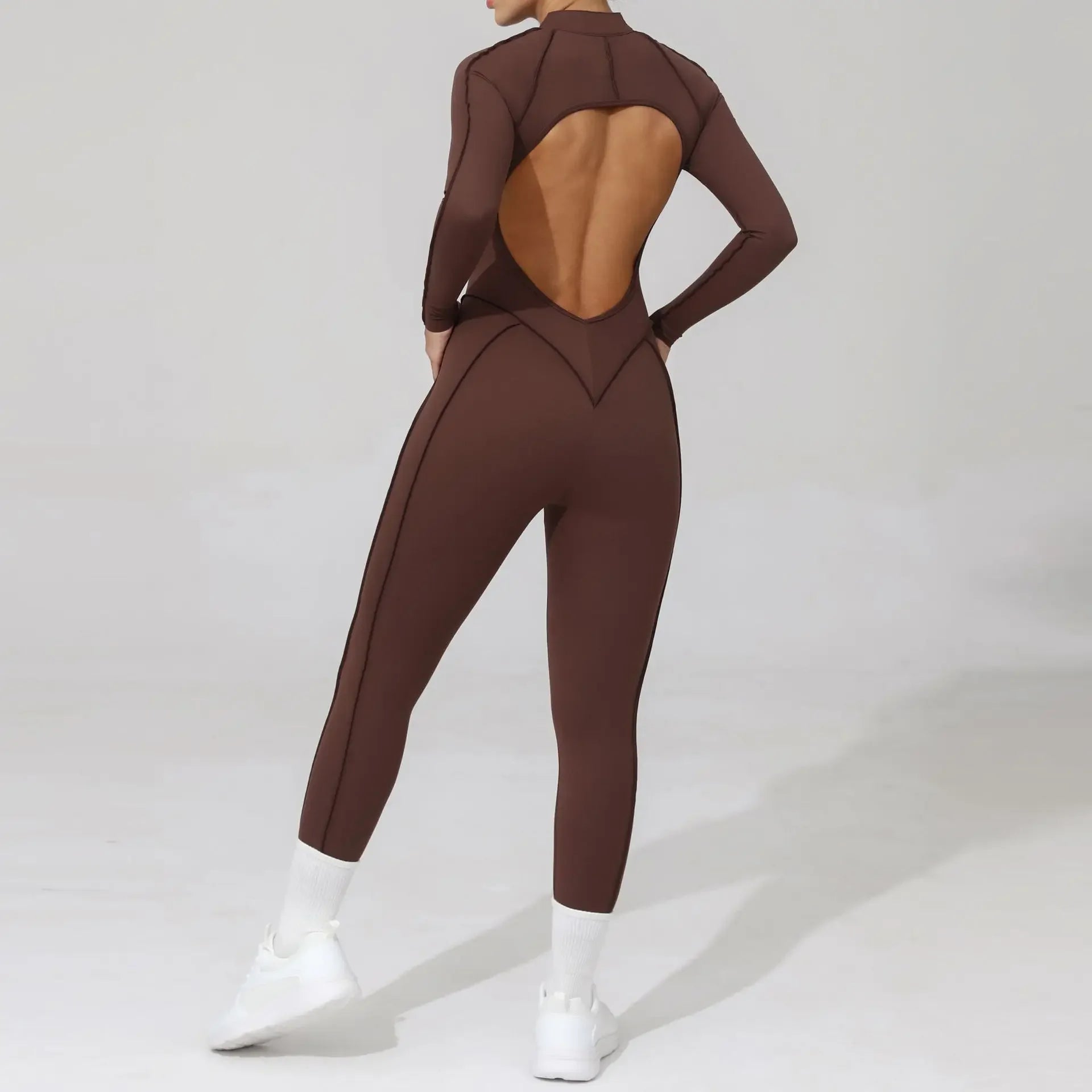 - Style: Long-sleeve full-length jumpsuit with front zipper and open-back detailing (select styles)