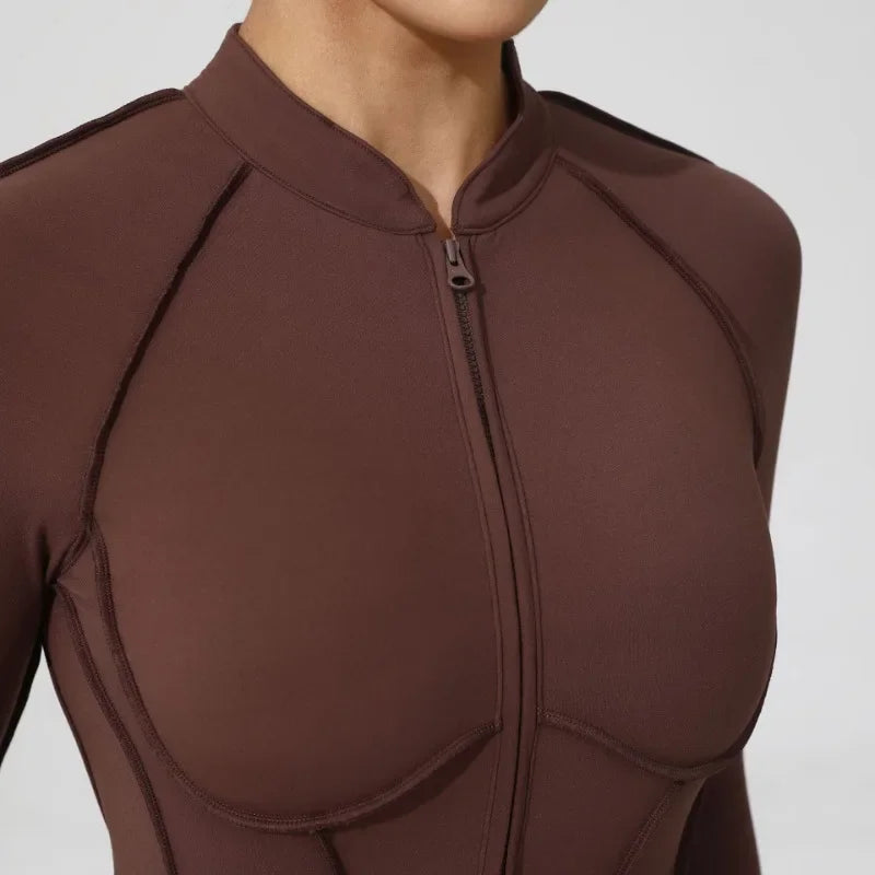 This sleek full-length jumpsuit sculpts your figure with a second-skin fit and front zip closure — ideal for streetwear edge or elevated athleisure.